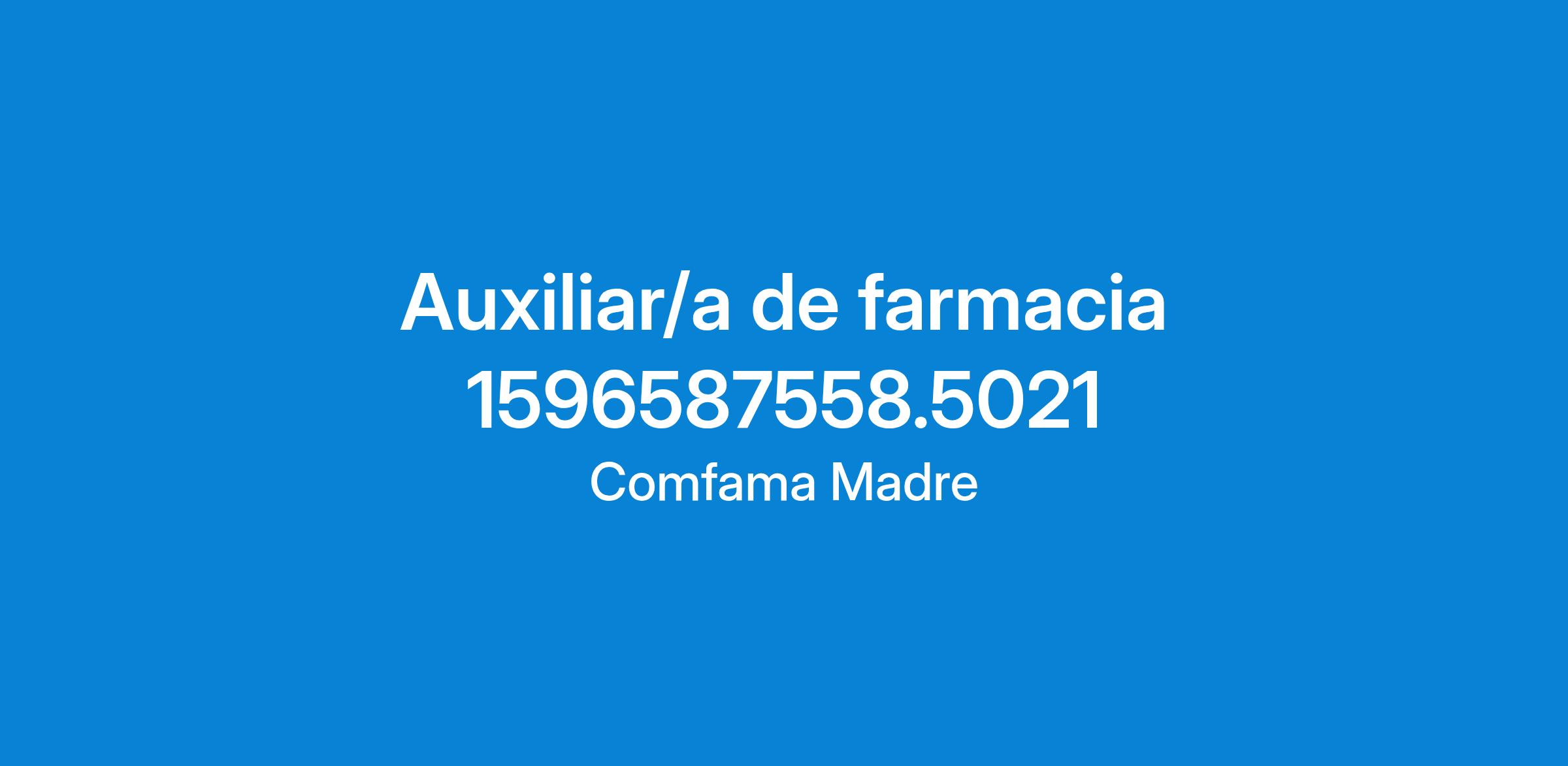 Importante empresa ubicada en Medellín solicita para su equipo de trabajo AUXILIAR DE FARMACIA, con experiencia mínima de 1 año en el área de farmacia.