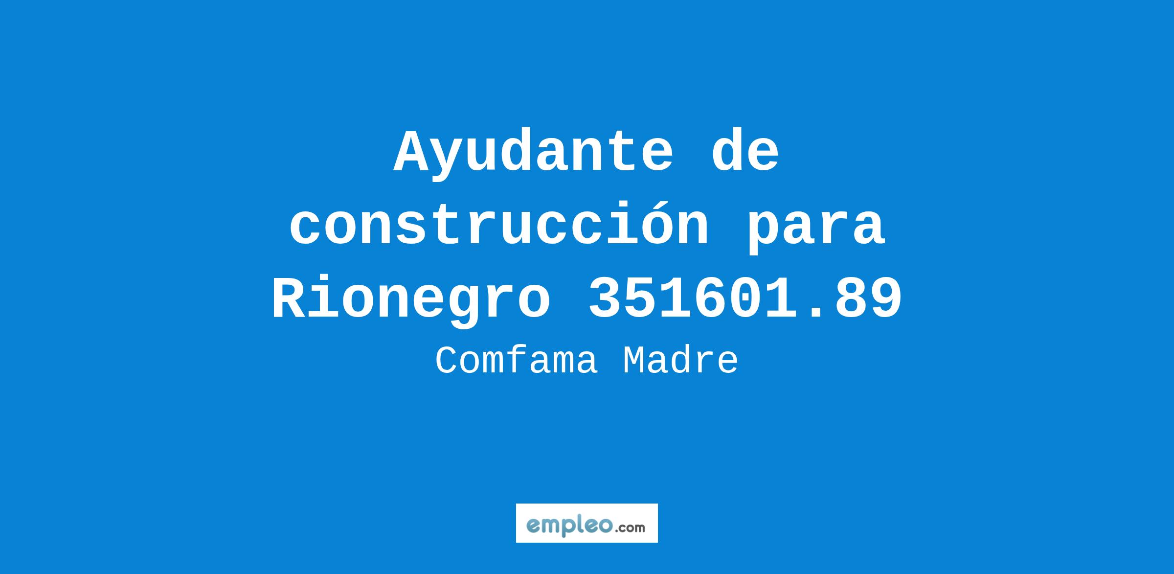 Empresa ubicada en Rionegro, Antioquia solicita para su equipo de trabajo, personal con experiencia mínima de 2 años para desempeñar el cargo de ayudante de construcción.
