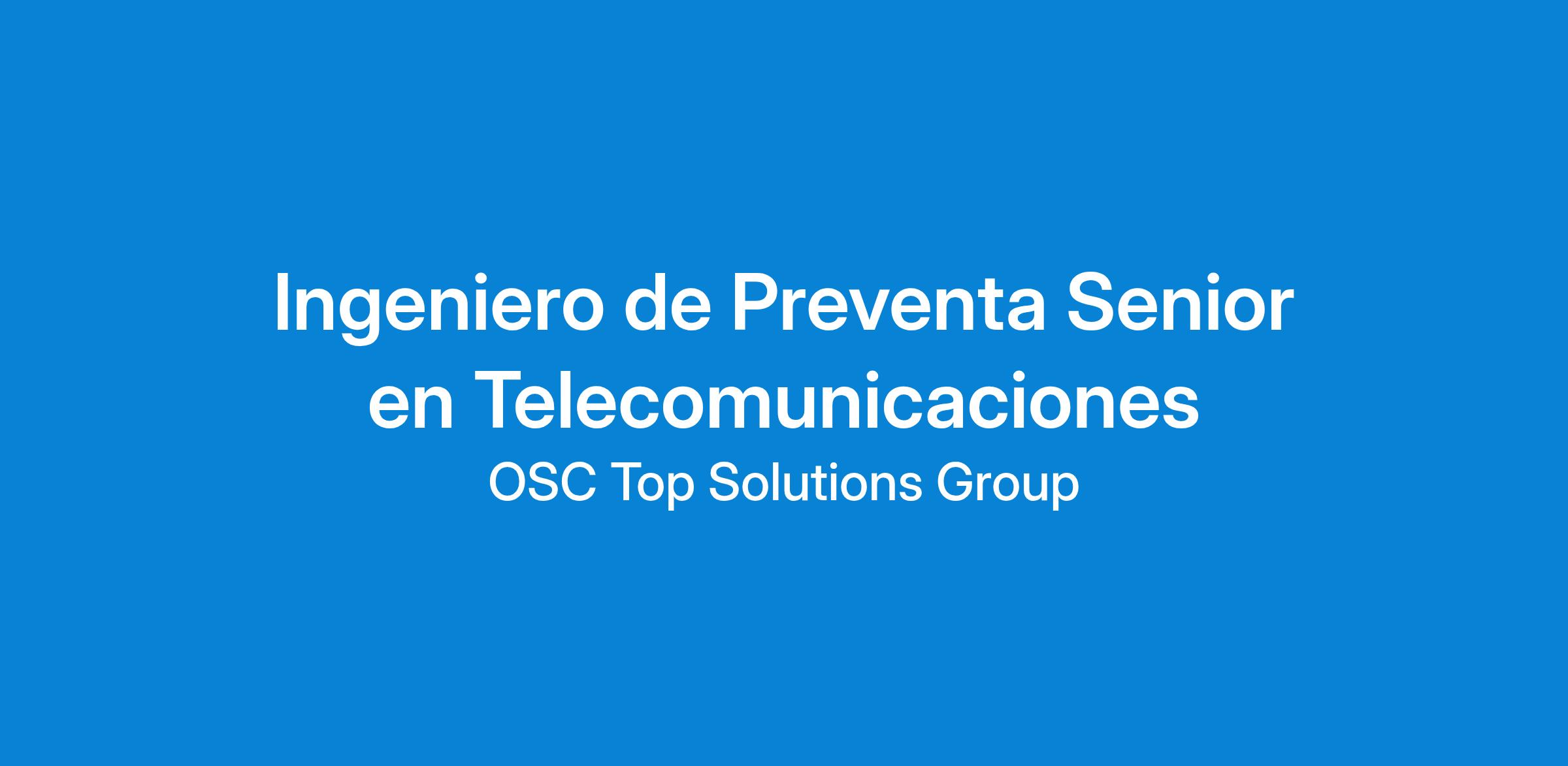 ¿Eres un <\/span>Ingeniero/a de Preventa<\/span> <\/span>apasionado por las telecomunicaciones, con un profundo conocimiento técnico y una habilidad innata para transformar desafÃos en oportunidades? ¡Esta es tu oportunidad! En <\/span>OSC TOP SOLUTIONS GROUP<\/span>, estamos en la búsqueda de <\/span>Ingenieros/as de Preventa Senior<\/span> <\/span>altamente motivados y proactivos en Colombia, para unirse a nuestro equipo de élite. Si te destacas por tu capacidad para generar propuestas técnico -económicas de alto impacto y tienes experiencia probada en la ejecución de proyectos, ¡queremos conocerte! Lo que buscamos en ti:<\/span> Si cumples con estos requisitos y estás listo/a para unirte a un equipo innovador donde tu experiencia y proactividad serán valoradas, ¡envÃanos tu hoja de vida! ¿Por qué unirte a nosotros?<\/span> En <\/span>OSC TOP SOLUTIONS GROUP<\/span>, te ofrecemos un entorno de trabajo desafiante y colaborativo, donde podrás crecer profesionalmente y dejar tu huella en el sector de las telecomunicaciones. Tendrás la oportunidad de trabajar con tecnologÃas de vanguardia y participar en proyectos estratégicos que impactarán el futuro de la conectividad en Colombia.