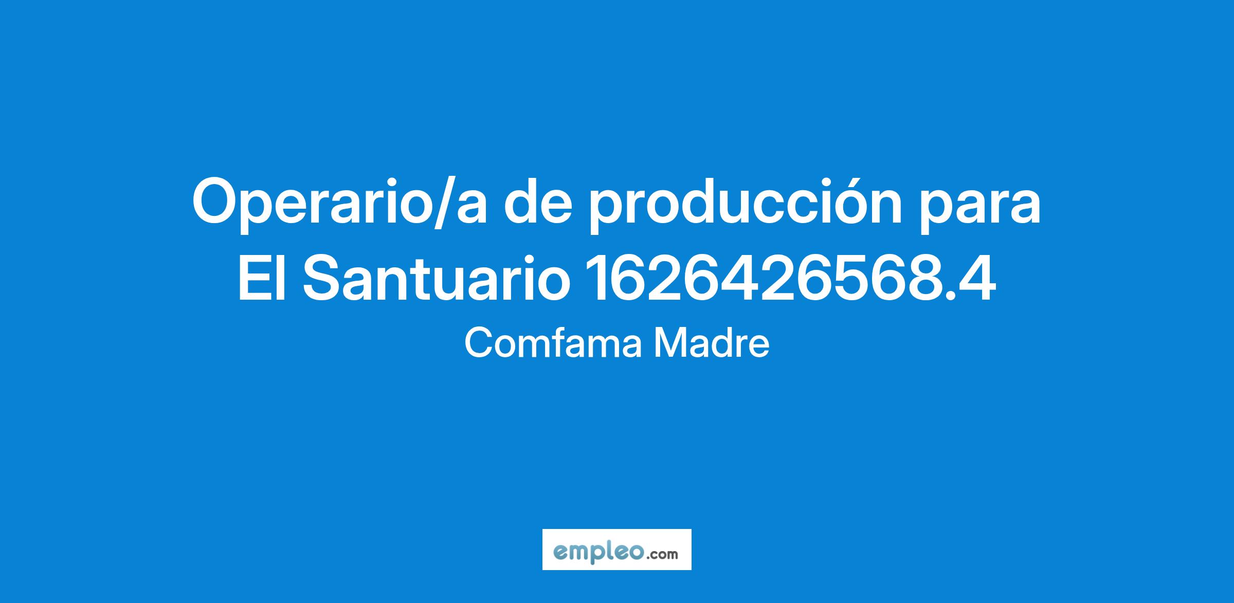 Importante Empresa del sector de producción y empaque ubicada en el oriente Antioqueño, requiere para su equipo de trabajo operario/a de producción con experiencia mínima de 6 meses.