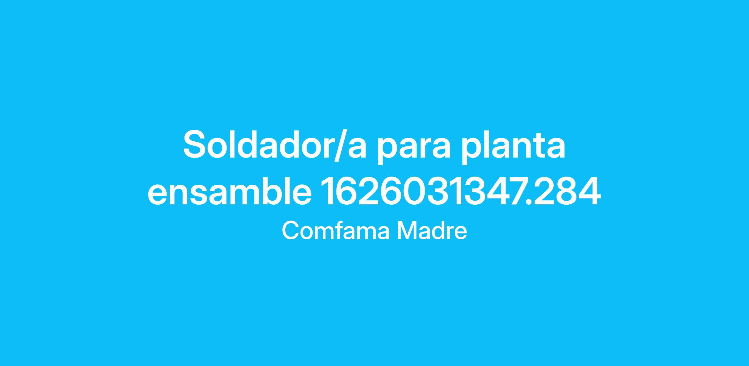 Empresa del sector manufacturero requiere para su equipo de trabajo Soldador/a para planta ensamble, con experiencia de seis (6) meses laboral en procesos de soldadura.
