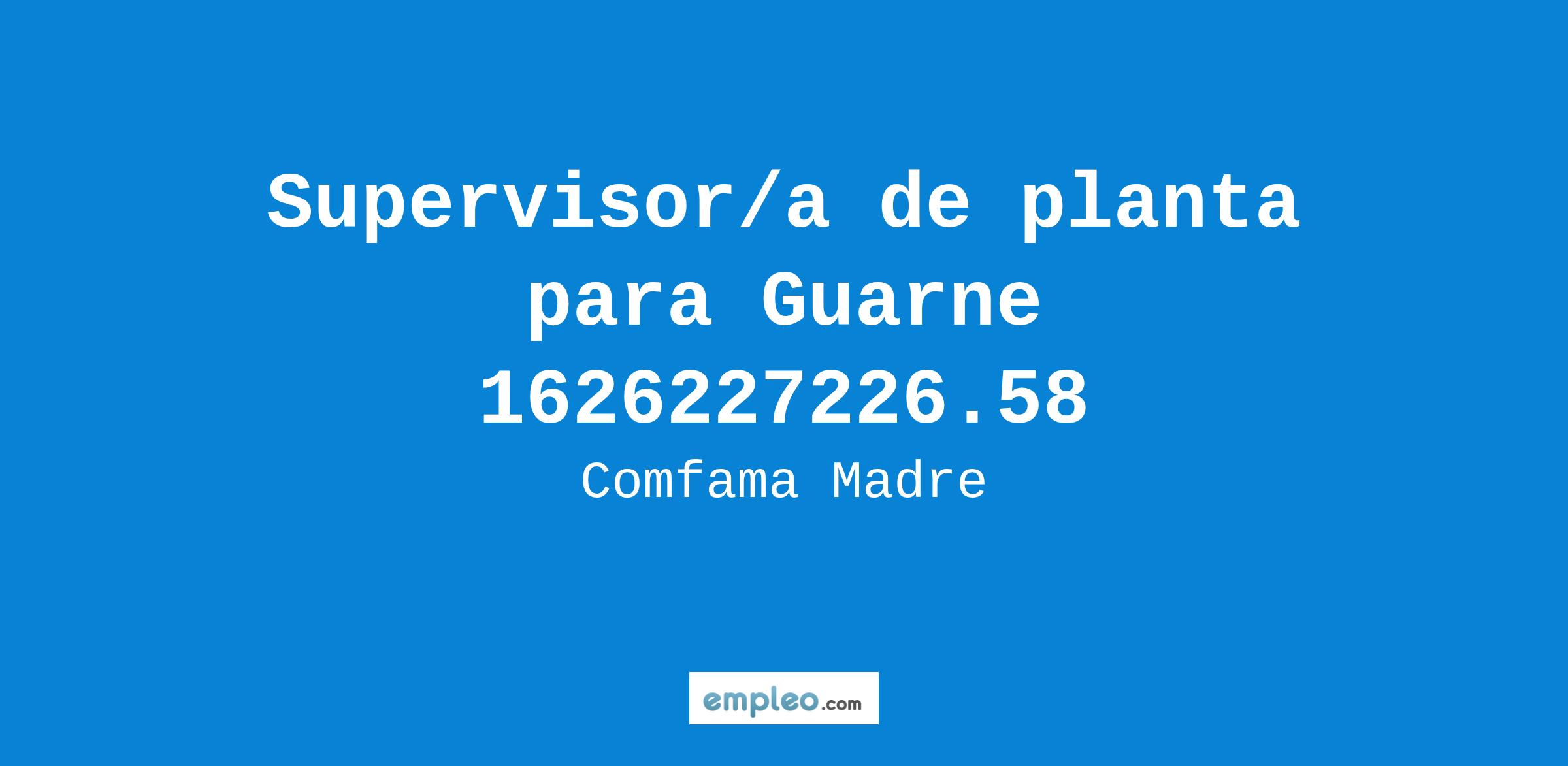 Importante Empresa del sector de producción ubicada en el oriente Antioqueño, requiere para su equipo de trabajo y/o operación una persona para ejecutar la labor de supervisor/a de planta con experiencia de 3 años.