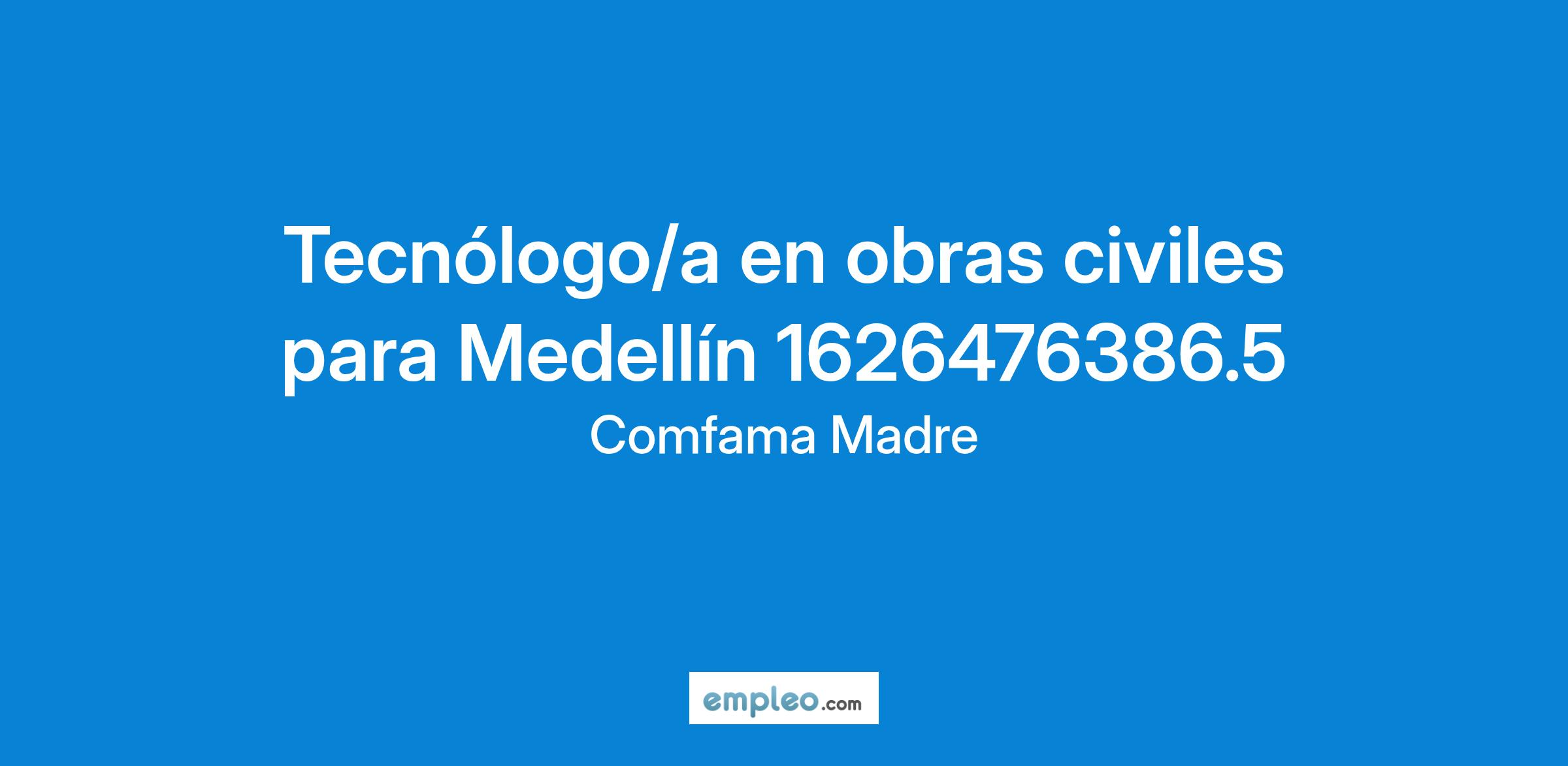 Empresa ubicada en Medellín, solicita para su equipo de trabajo, personal con experiencia mínima de 2 años para desempeñar el cargo de tecnólogo/a en obras civiles.